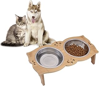 Sue Supply surélevé pour Chien et Chat en Bambou Pet Feeder, Double Bol surélevé Support est livré avec Deux Bols en Acier Inoxydable