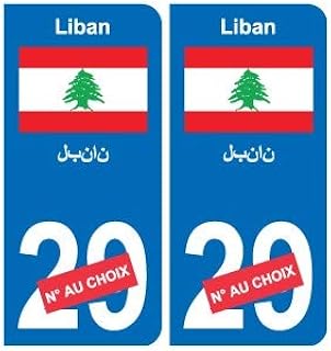 Autocollant Liban لبنان sticker numéro département au choix plaque immatriculation auto - Angles : arrondis