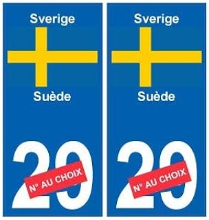 Suède Sverige sticker numéro département au choix autocollant plaque immatriculation sticker auto - Angles : arrondis