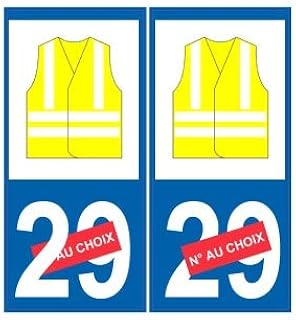 Gilet Jaune numéro au choix sticker autocollant plaque immatriculation auto - Angles : droits