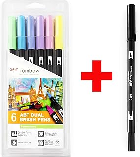 Tombow ABT Lot de 7 marqueurs double pinceau – Pointe pinceau/fine – 0,3–10 mm – Couleurs pastel + noir