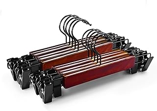 SODIAL Cintres De Jupe en Bois avec Pinces Ajustables (Lot de 10) Cintres Antidérapants Finition Naturelle Cintres en Bois Lotus, Crochet Pivotant à 360 Degrés pour Jupes Jeans Pantalons