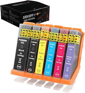 Geker-Cartouche d'encre compatible couleur haute capacité pour Cartouches d'Encre Canon Pixma pour Séries TS8150 TS8151 TS8152 TS9150 TS9155 (Pack de 6, Noir, Cyan, Magenta, Jaune, Bleu)