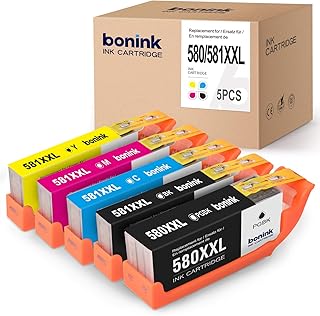 BONINK 5 Compatibles Canon PGI-580XXL 580 XXL CLI-581XXL Cartouches d'encre pour Canon PIXMA TS6150 TS6250 TS6151 TR7550 TS8150 TS8151 TS8152 TS9150 TS9155 (Pigment Noir/Noir/Cyan/Magenta/Jaune)