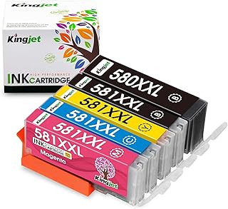 Kingjet PGI-580 XXL CLI-581 XXL Cartouches d'encre pour Canon 580 581, Compatibles avec Canon Pixma TR8550 TS705 TR7550 TS9550 TS6350 TS6250 TS6150 TS6151 (1 PGBK/1 Noir/1 Cyan/1 Magenta / 1 jaune)