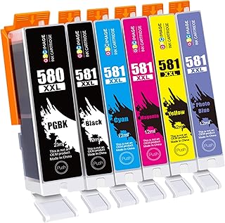 GPC Image PGI-580XXL CLI-581XXL Cartouches d'encre Remplacement Compatible Canon 580 581 XXL pour Canon PIXMA TS6150 TS6151 TR8550 TR7550 TS8150 TS8151 TS9150 (PGBK/Noir/Cyan/Magenta/Jaune/PB,6-Pack)