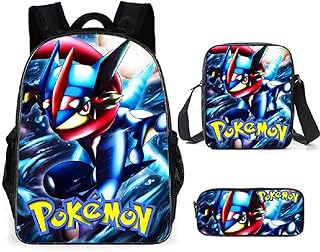 ZTFay Anime Pokémon Pikachu garçons Filles école Sac à Dos Sac à bandoulière boîte à Lunch Crayon Sac 3 pièces Ensemble Cadeaux de noël pour Enfants Filles garçons