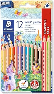 Staedtler Noris Jumbo, Crayons De Couleur Épais, Conçus Pour Les Enfants, Système Anti-Casse, Pack Bonus Avec 12 Crayons Aux Couleurs Vives Et Un Taille-Crayon, 128 Nc12P1