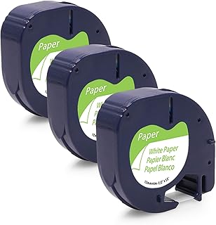 Fimax Ruban pour Étiqueteuse Compatible Dymo LetraTag Ruban Plastique 12mm x 4m, Recharge pour Dymo LetraTag Étiqueteuse LT-100H LT-100T (Dymo Plastic White Labels) (Pack de 3, Noir sur Blanc)