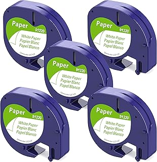 Unistar Ruban pour Étiqueteuse Compatible Ruban Dymo Letratag 91201 Plastique 12mm x 4m Noir sur Blanc pour DYMO LetraTag LT 100H 100T XR (5-Pack Recharge Dymo Letratag Plastic White Tape)