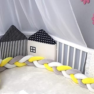 RAILONCH Doux Tour de lit Bébé Coussin Serpent Coussin Tressé pare-chocs Velours Bébé Protection Chambre Décor 200CM 300CM (Blanc + gris + jaune,2m)