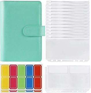 Varadyle Carnet de notes à 6 trous - 14 pochettes A6 avec couverture en cuir - 6 anneaux - Avec enveloppe pour argent liquide - Vert