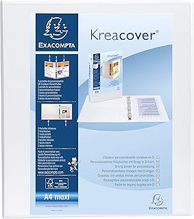 Exacompta 51844E Classeur avec 3 pochettes personnalisables 4 anneaux forme D de 5 cm dos de 7 cm 32 x 29 cm Couverture Blanc