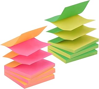 ZCZN Feuillets Autocollants Z-Notes, 6 Blocs Orange Néon,Fuchsia,Vert,Jaune Néon, Notes Autocollants 76 x 76 mm, 80 Feuilles par Bloc - 480 Feuilles