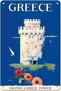 Grèce - Tour Blanche Salonica De Thessalonique - Affiche Voyage de Boswell c.1952 Plaque d'art en métal 20 x 30cm