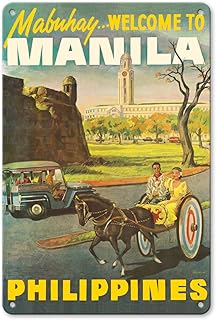 Manille, Philippines - Mabuhay (Bienvenue) - Affiche Voyage c.1950s Plaque d'art en métal 20 x 30cm