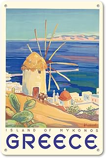 Grèce - Île de Mykonos - Affiche Voyage c.1949 Plaque d'art en métal 20 x 30cm