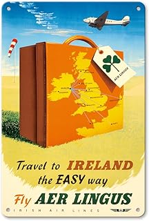 Voyage À L'irlande Le Chemin Facile - Vol AER Lingus - Affiche Avion c.1950s Plaque d'art en métal 20 x 30cm