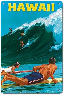 Hawaï - Grande Vague Surfant - Affiche Voyage de Chas Allen c.1950s Plaque d'art en métal 20 x 30cm