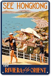 Voir Hong Kong - La Riviera de l'Orient - Chine - Sedan (Jianyu) épaule Transport - Affiche Voyage de J.D. Pandary c.1935 Plaque d'art en métal 20 x 30cm