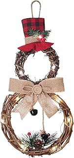 YQing 40.6cm Noël Couronne de Bonhomme de Neige, Iluminer Bonhomme de Neige de Couronne de Noel Porte Decoration avec Chapeau et Nœud en Forme Noël Bonhomme de Neige Décorative Couronne