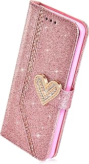 Herbests Coque Huawei P8 Lite 2017 Paillette Etui en Cuir,Bling Diamant Strass Housse de Protection Étuis à Rabat et Folio Magnétique Etui avec Motif Porte-Cartes Flip Wallet Case,Or Rose