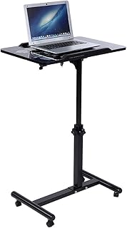 Zerone- Bureau d'Ordinateur Portable Amovible à roulettes, Bureau d'Ordinateur Mobile Multifonctionnelle Table de Lit Réglable en Hauteur avec Frein pour Salon Chambre Bureau(Noir)