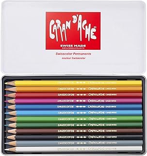 CARAN D ACHE 12 Crayons de couleur Permanents Assortis.General Selection,Swisscolor (France Import)