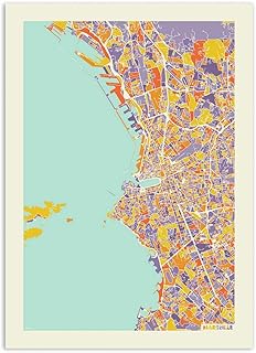 WALL EDITIONS Art-Poster - Marseille Rainbow Map - Muzungu - Format : 50 x 70 cm
