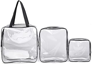 3pcs Clair cosmétique Sac Voyage Trousse de Toilette Ensemble avec Fermeture à glissière PVC Trousse de Maquillage poignée Sangles étanches Emballage Organisateur S