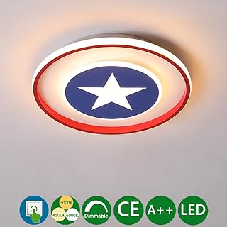 Luminaire Plafonnier LED Dimmable Blanc Chaud/Neutre Blanc/Blanc Froid Lampe Plafond Pépinière Chambre Salon Applique Fille Fille Garçon Captain America Shield Lampe Plafonnier Rond,Ø40*h5cm~38w