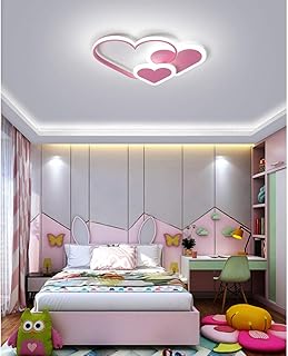 HYQJUNE LED Plafonnier Moderne Salon Lampe Plafond Dimmable Coeur Acrylique Design Luminaire Chambre Enfant Lumière L'éclairage Restaurant La Chambre Couloir Bureau Décoration Lustre Ø50*H5,5 Cm,Rose