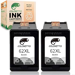 Cartouche d'encre remanufacturée COLORETTO pour remplacer Les Cartouches HP 62xl 62 XL (2 Noire) à Utiliser avec Les imprimantes Officejet 200 200c 250 Envy 5541 5542 5543 5544 5547 5548 5549 5642
