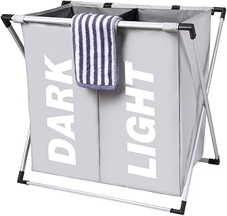 kimfrXD Panier à Linge 2 Compartiments Panier à Linge Pliable Panier à Linge Corbeilles à Linge Panier de blanchisserie en Tissu avec Sac à Linge Pliable Poignée