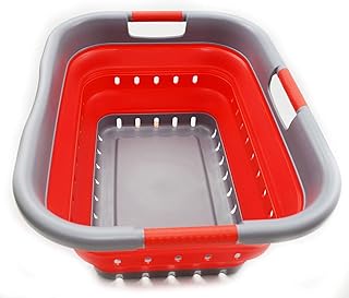 SAMMART Panier à linge pliable en plastique à 3 poignées - Baignoire ovale / Panier - Conteneur / organisateur de rangement pliable - Cuve de lavage portable - Panier à linge peu encombrant