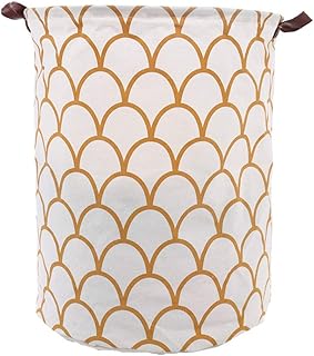 Depory pliable Panier de rangement Panier à linge/panier à linge/panier à linge avec poignées en imitation cuir avec écailles de poisson Impression Tissu en coton et lin Beige 40 cm*50 cm