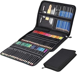 juehu 74PCS Crayons de Couleurs,Dessin Crayons Croquis Art Set, Crayons coloriage personnalisé Trousse,Pastel, Aquarelle, malette à Dessin Charbon de Bois,métallique Crayons de Couleur Adulte Enfants