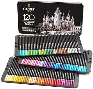Crayons de couleur d'artiste Castle Arts 120 pièces avec mine douce pour un rendu expert des solides, des mélanges et des ombres ; idéal pour les livres de coloriage et comme fournitures scolaires
