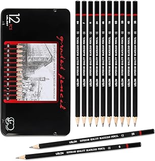 Crayon de Croquis,Professionnel Crayons Dessin,Kit de Croquis Crayons Ensemble, Crayons à Croquis graphite Lot De 12 Crayons de Dessin En Graphite Haute Qualité (A)